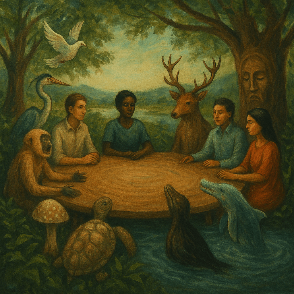 It is not ruled by elections or governed by parties. It does not enforce coherence. It listens. It asks difficult, slow questions: What does justice look like in a forest? What does consent mean to a migrating whale? Who speaks with the rivers?